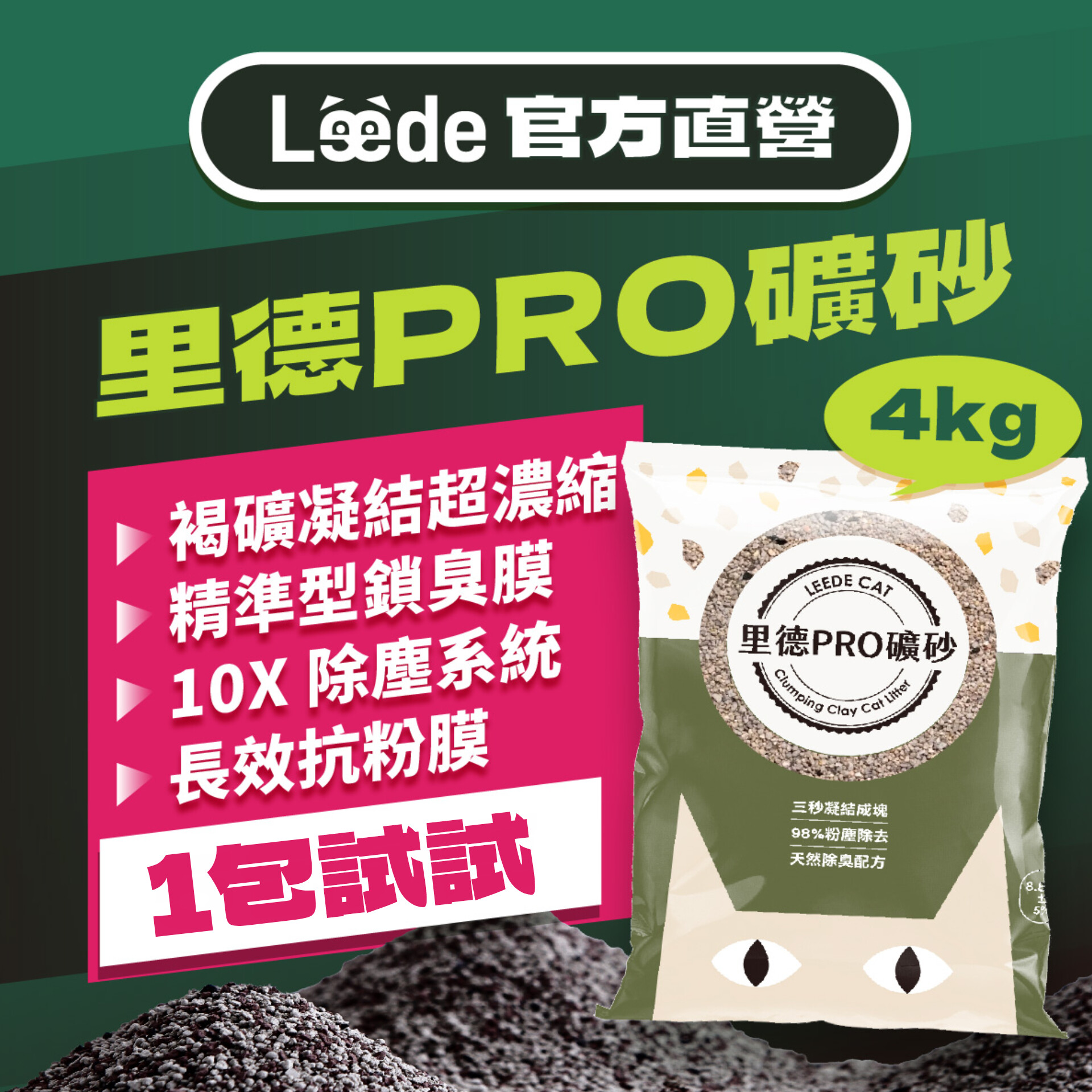 褐礦凝結超濃縮TerraClump Pro™ 每粒砂都經過 TerraClump Pro™ 超濃縮處理,遇尿後砂粒像細密鎖鏈編織,1秒凝結不易崩散