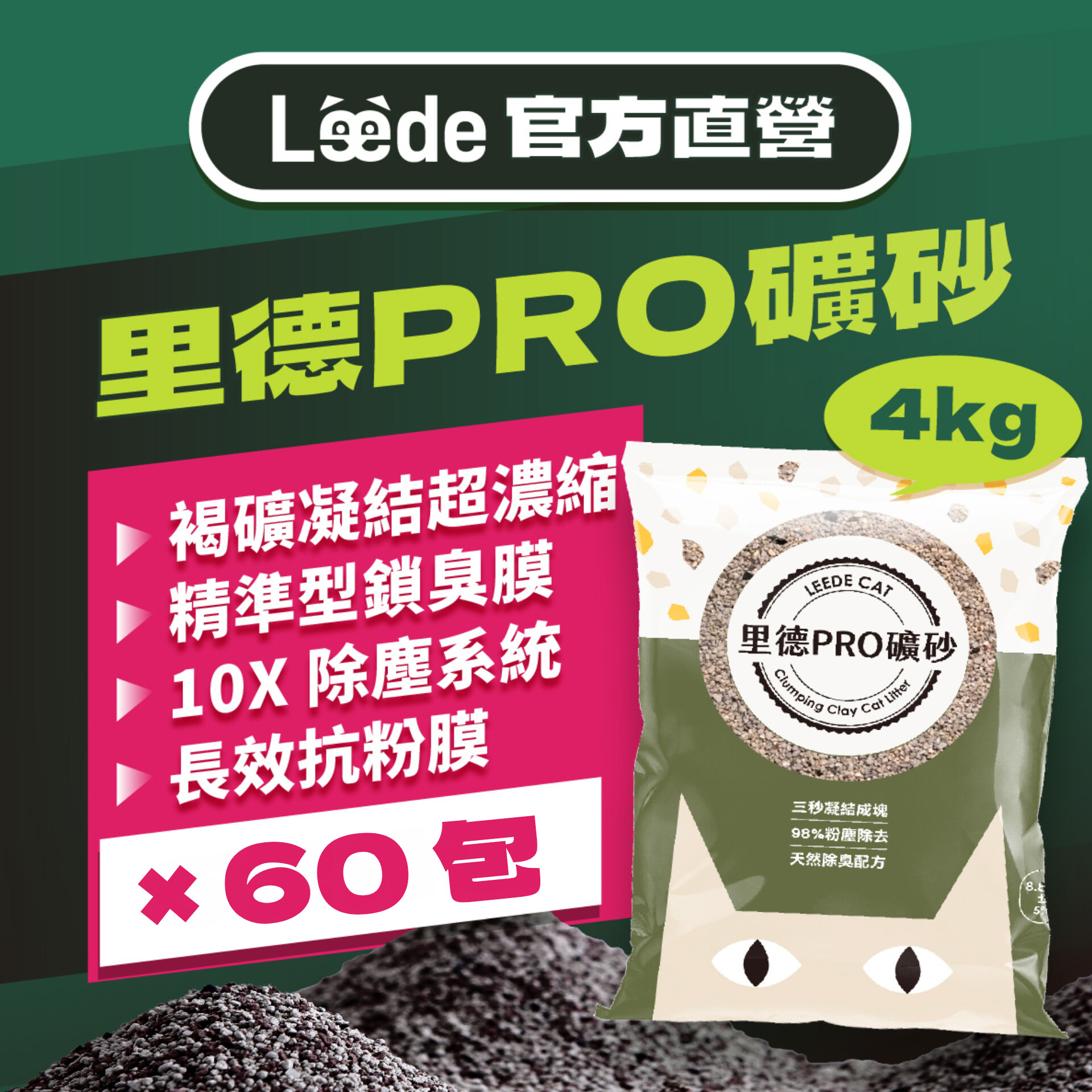 褐礦凝結超濃縮TerraClump Pro™ 每粒砂都經過 TerraClump Pro™ 超濃縮處理,遇尿後砂粒像細密鎖鏈編織,1秒凝結不崩散